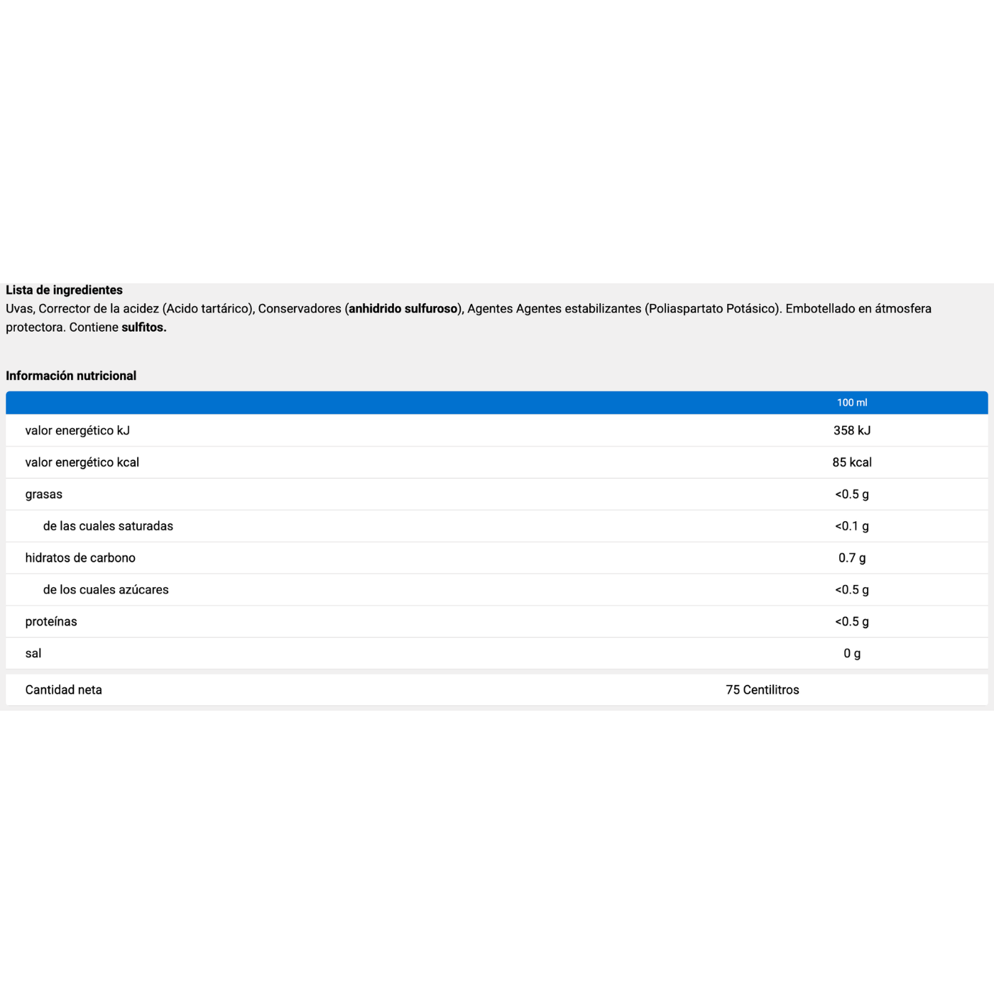 Contiene sulfitos.